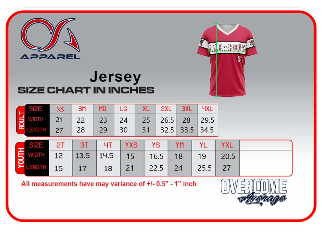 PLEASE MAKE SURE TO CONFIRM YOUR PLAYERS SIZE FROM THE SIZE CHARTS